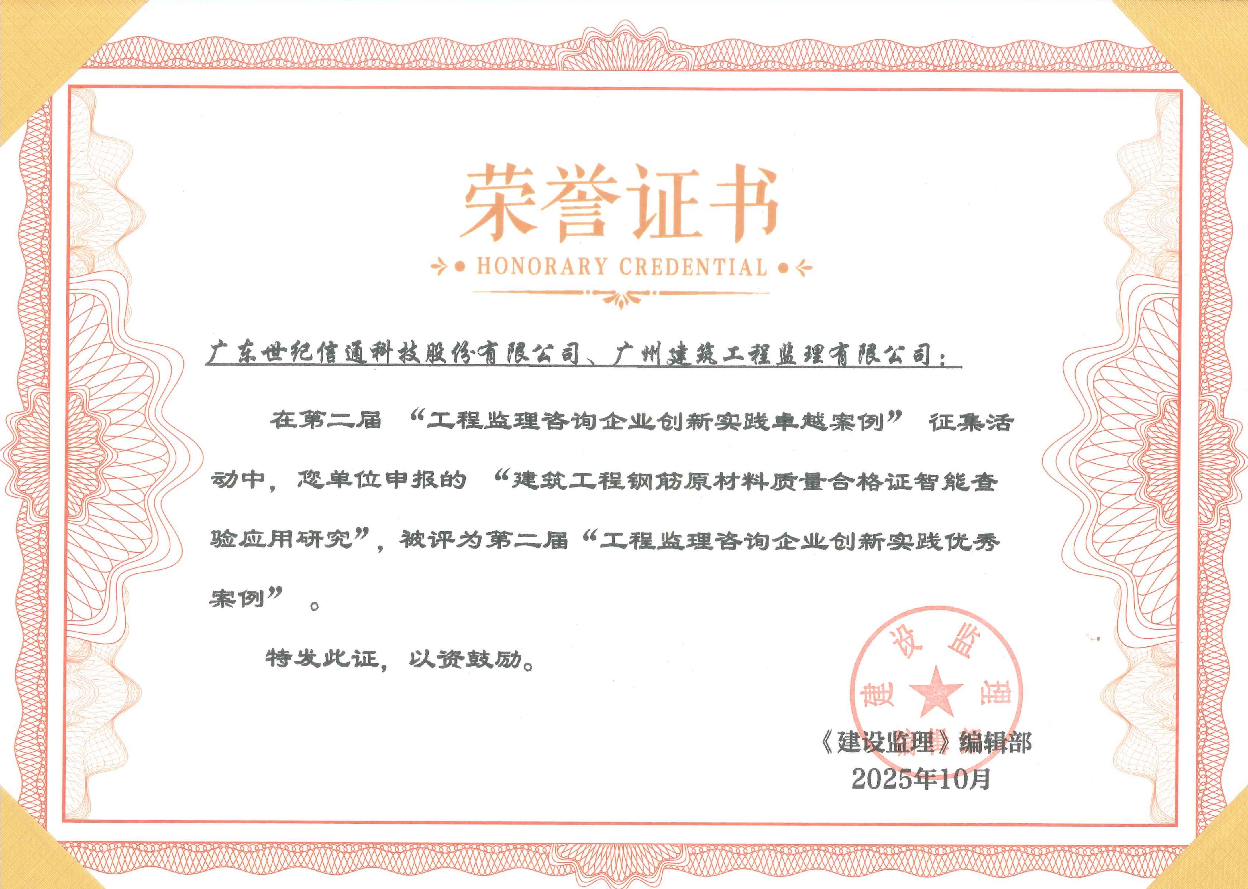 • 喜報|我公司榮獲第二屆“工程監理咨詢企業創新實踐優秀案例”獎項